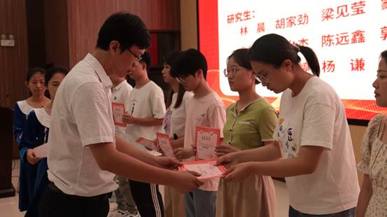 学院党委委员梁洁副教授为金相技能大赛获奖学生颁发荣誉证书