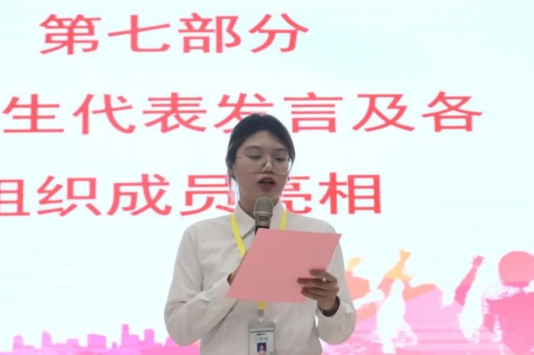 之后,学生会主席团成员贺祎婷代表本科生在大会上发言。她认为,学生骨干要加强思想引领,坚定理想信念,恪守“勤恳朴诚,厚学致新”的校训精神;要处理好工作和学习的关系,在工作中锻炼自身能力。