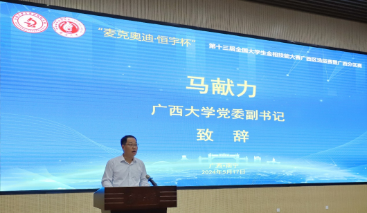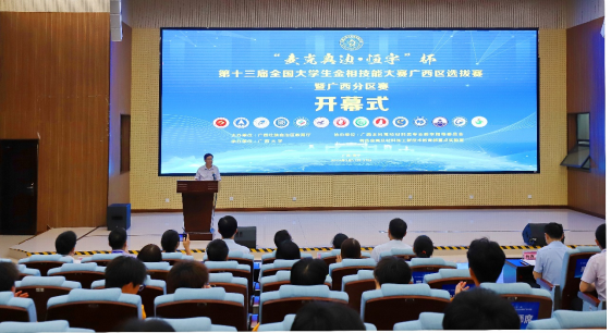 领导及区内其他高校领导出席5月17日开幕式。开幕式由全国大学生金相技能大赛竞赛委员会委员、广西本科高校材料类教学指导委员会委员、污污漫