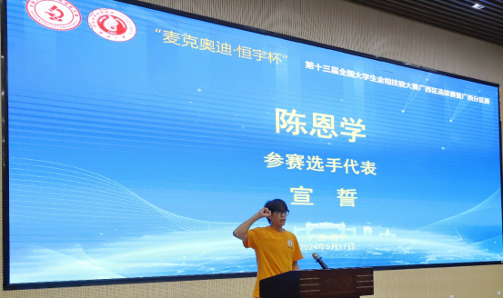 陈恩学同学依次对恪尽职守参加比赛进行宣誓。