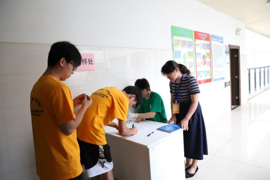 参赛师生适应场地,指导老师为参赛选手讲解注意事项