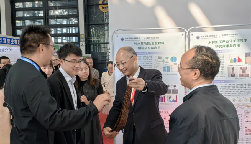 联合林学院展出了近年来木材高值化加工利用技术相关研究成果与技术产品,展现我校在林业工程领域的深厚底蕴和创新能力,吸引了众多专家和企业人士的光临和咨询。