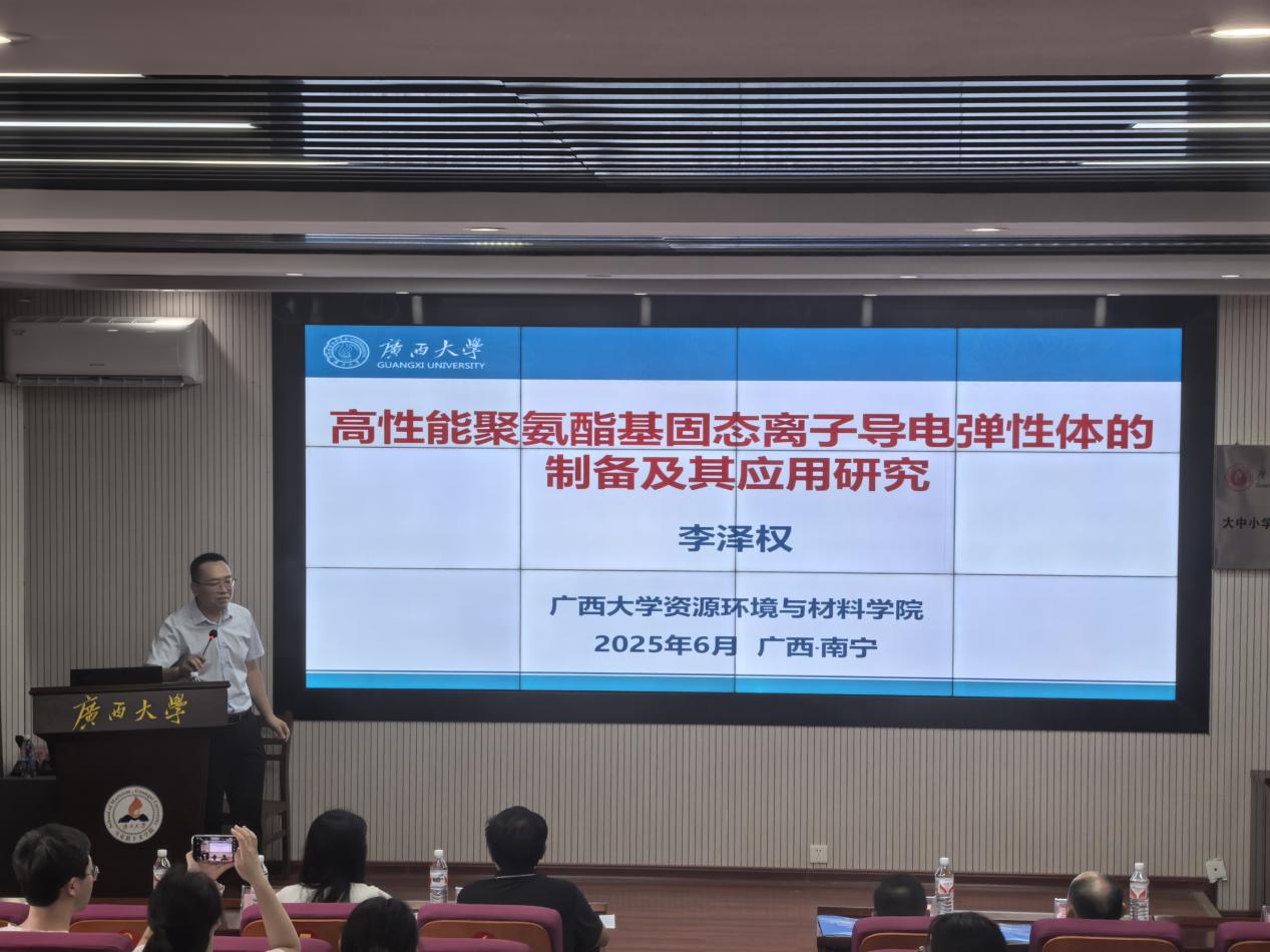 李泽权助理教授作题为《高性能聚氨酯基固态离子导电弹性体的制备及其应用研究》的报告