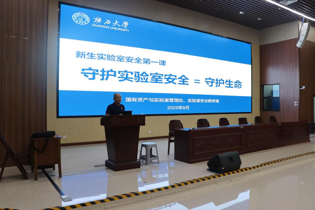 为切实增强 2025 级新生实验室安全防范意识,夯实科研实践起步阶段的安全基础,帮助新生快速掌握实验室安全规范,9月19 日上午,有着丰富实验室安全管理经验的校国有资产与实验室管理处副处长陆翔到污污漫