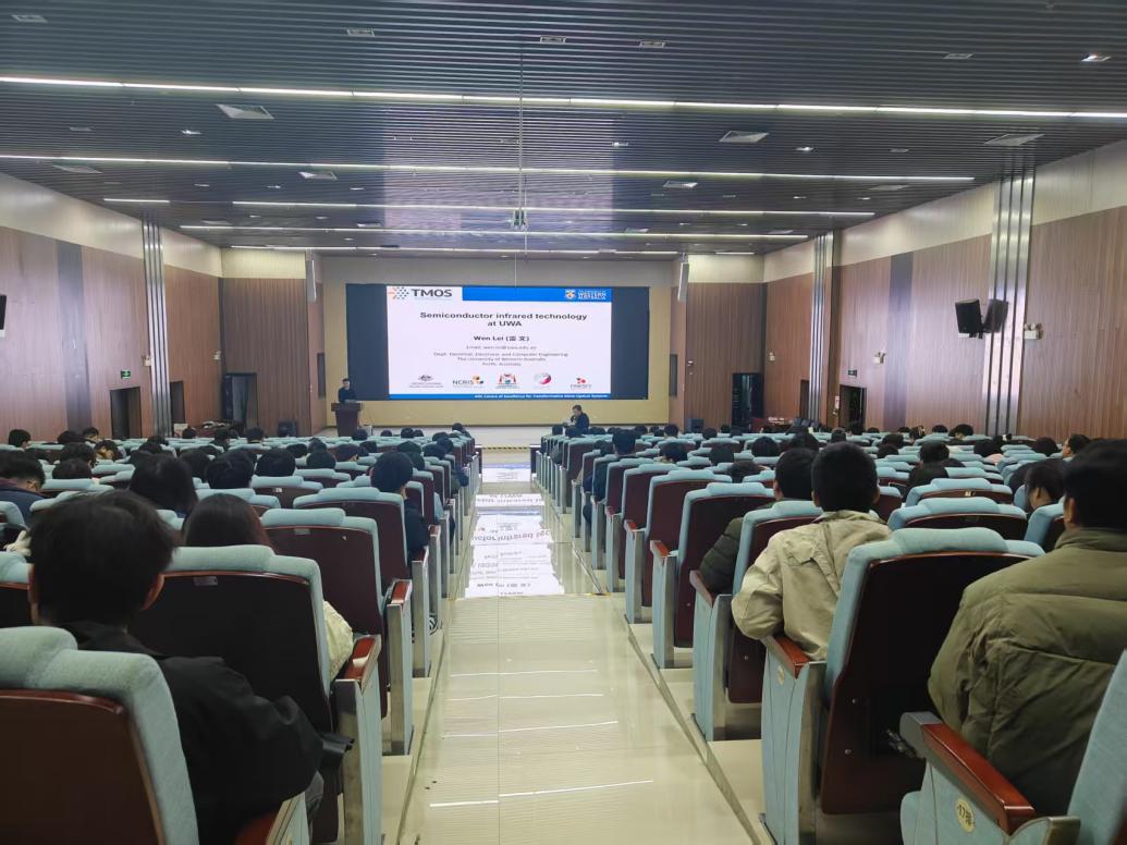 进行学术交流,并作了题为《Semiconductor infrared technology at UWA》的学术报告。报告会由学院院长邹炳锁主持,吸引了污污漫