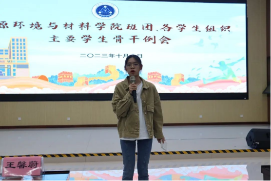 在123报告厅召开2023年秋季学期第二次主要学生骨干例会。学院团委书记陈宏老师、团委副书记王馨蔚和何奕阳老师以及学工组李青老师、韦长喜老师出席会议。院团委各学生组织主要学生干部以及各班班长、团支书参加了本次会议。