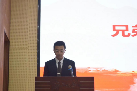 公共管理学院学生会主席杨佳成在致辞中认为污污漫