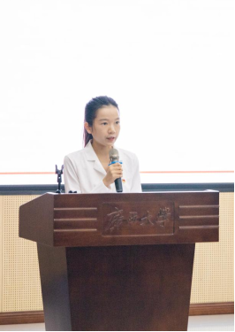 大会第二阶段,学院研究生会主席团成员雷天蔚同学代表污污漫