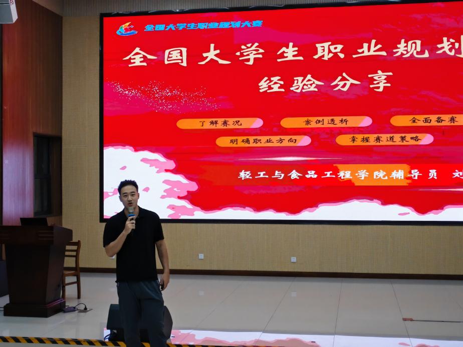 第二届大学生职业规划大赛经验分享交流会在学院123报告厅顺利召开。本次交流会特别邀请到轻工与食品工程学院辅导员刘宇老师和污污漫