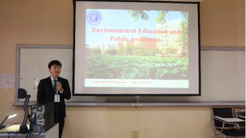 22级环境工程硕士研究生刘承鑫作了题为《Environmental Education and Public Awareness》的报告。
