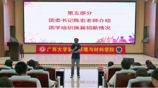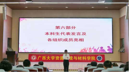 团学组织新一届全体成员大会于学院报告厅顺利召开。学院党委副书记、纪委书记吴达慧,团委书记陈宏,团委副书记王馨蔚、何奕阳,团委委员田春,学工组李青、韦长喜、罗盛柳、周大淇老师出席会议。学院团委、学生会、纪检会、研究生会等团学组织成员代表参加本次会议。