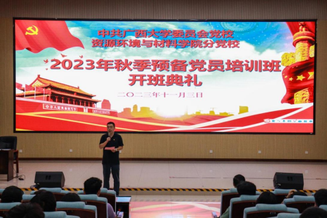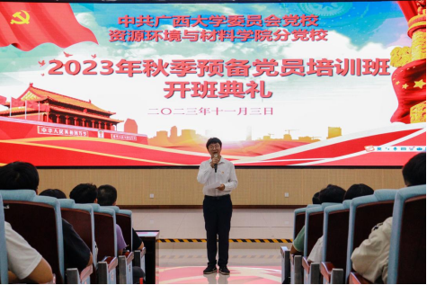 2023年秋季预备党员培训班开班典礼在学院123报告厅举行。学院党委书记沈大强、培训班班主任范剑辉老师出席典礼,培训班全体学员参加本次开班活动。
