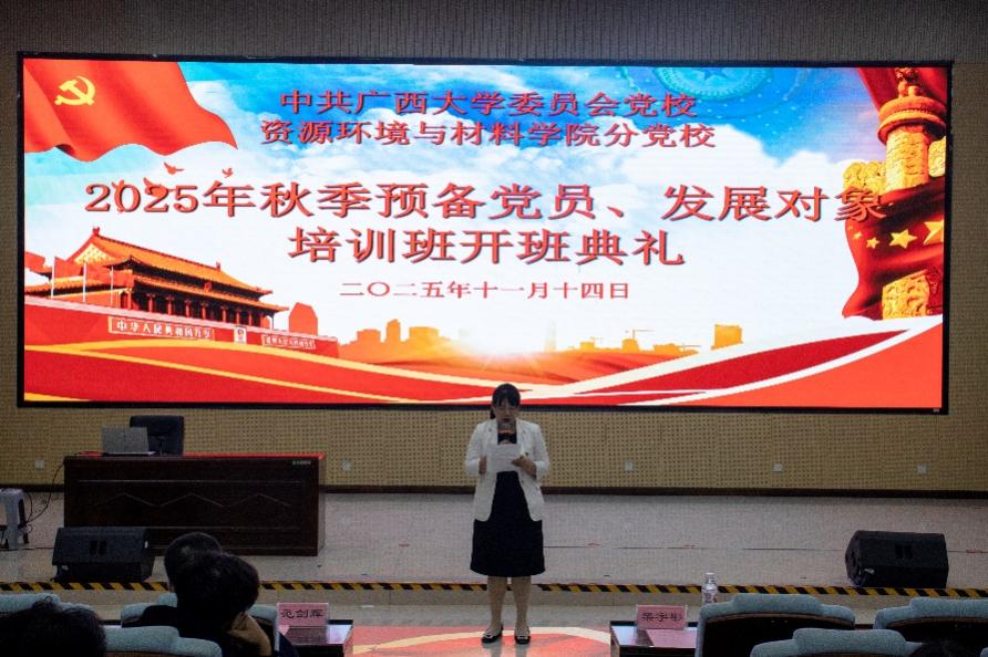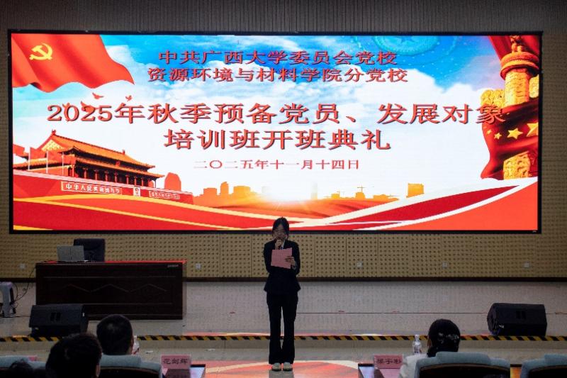 2025年秋季预备党员、发展对象培训班开班典礼在学院123报告厅举行。学院党委副书记、纪委书记梁宇彬,预备党员培训班班主任梁迪顺,发展对象培训班班主任范剑辉,学工组辅导员陆一龙出席活动。