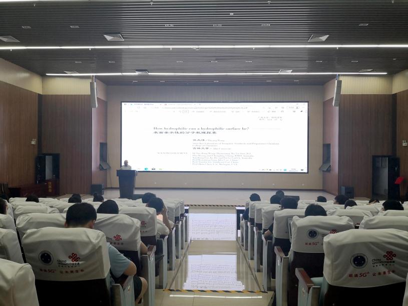 进行学术交流,并作了题为《表面亲水性的分子机制溯源》的学术报告。报告由邹炳锁院长主持,沈大强书记、污污漫